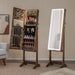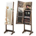 Color: Walnut/ Rustic Brown/White Material: MDF, Glass, Acrylic Product Dimension: 41 cm x 38.5 cm x 151 cm (L x W x H) External Mirror Size: 108 cm x 37 cm (L x W) Plastic Bag Size: 30 cm x 18.5 cm (L x W) Drawer Size: 16.5 cm x 6 cm x 6.5 cm (L x W x H) Acrylic Lipstick Box Size: 32.5 cm x 4.5 cm x 7.5 cm (L x W x H) Thickness of Cabinet: 10.5 cm Power Input: 100-240V~50/80 Hz, 700mA Power Output: 12V, 3000mA Length of Adapter Cord: 1.5 m Net Weight: 13.5 kg Package Includes: 1 x Jewelry Cabinet 1 x Power Adapter 2 x Keys 1 x Pack of Accessories 1 x Instruction