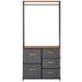 This ingenious organizer is much more than meets the eye. With a metal hanging rail at the top, it offers an abundance of space to neatly hang your garments, keeping them wrinkle-free and easily accessible. Below, the organizer boasts a set of five material drawers—two sizeable ones complemented by three smaller compartments. This thoughtful arrangement provides the perfect abode for your footwear, accessories, and attire, maintaining order and effortless organization.