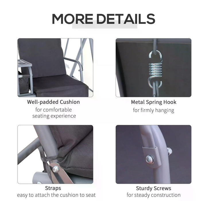 No need to leave your cozy spot for refreshments—the swing includes a handy middle table with lid and cup holders. Keep your favorite drinks stable and your essentials within easy reach, enhancing your outdoor relaxation.