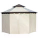 Enhancing your outdoor experience, the pavilion comes with six elegant zippered curtains that can be easily removed. These curtains not only add an aspect of privacy but also contribute to a luxurious feel, allowing you to indulge in tranquil solitude or intimate gatherings. The convenient velcro straps make it simple to secure the curtains to the pavilion's sturdy pillars, offering versatility between enclosed seclusion and an open, airy environment.