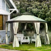 Our garden pavilion features a distinctive double-layered roof which enhances ventilation, providing you with a cool and comfortable shelter even on the warmest days. The canopy, crafted from premium 180g/m² polyester, boasts a PU coating that ensures water resistance and UV protection, making your outdoor time enjoyable come rain or shine. Additionally, the innovative design includes built-in drainage holes that efficiently prevent water accumulation.