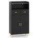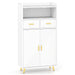Its strong metal legs ensure durability and stability. Moreover, this sideboard buffet cabinet features a wide countertop, an open compartment, 2 drawers and a 2-door cabinet, optimized for storage as a kitchen storage cupboard or pantry cabinet. The interior features a 3-level adjustable shelf, providing flexible storage solutions for items big and small. For added safety and peace of mind, this freestanding storage cabinet is equipped with anti-toppling devices and drawer stoppers. Maximize Your Space: Featuring a spacious countertop, an open compartment, 2 smoothly sliding drawers and a 2-door cabinet, this kitchen storage cabinet is perfect for keeping your essentials organized and within easy reach. Customizable Convenience: This pantry cabinet boasts a 3-level adjustable shelf within the cabinet, allowing you to optimize your organizing strategy based on the size and shape of the items you need to store. Sturdy Construction: Supported by sturdy metal legs with anti-slip foot pads, this kitchen storage cupboard promises not only longevity but also stable and reliable support for your items. Enhanced Safety: This laundry room organizer comes with anti-toppling devices to keep it securely in place. Additionally, the drawer stoppers ensure your belongings stay safe and secure. Versatile Design: Whether you’re looking to upgrade your kitchen storage, add a touch of sophistication to your dining room or create a neat and organized bathroom, this cabinet’s versatile design will blend seamlessly with your existing decoration.