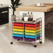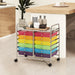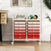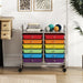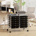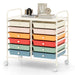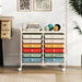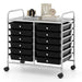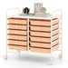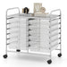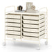 With 12 removable drawers, you can store various classified items. Moreover, the auxiliary cart features a large countertop for storing items. Each drawer comes with slides and knobs for easy opening and closing. Additionally, the cart's frame is made of galvanized metal, providing great stability. Thanks to its 4 wheels, you can move the cart anywhere with ease. It is ideal for living rooms, kitchens, offices, and more. Bullet Point:Ample Storage Space: This cart features 12 drawers that can be used to store books, ornaments, tools, and more to keep the space more organized and categorized. Additionally, the spacious countertop can be utilized for clocks, photo frames, potted plants, and other small items. Stable and Sturdy Frame: The storage cart's frame is made of galvanized metal, which is hard and wear-resistant. Therefore, the cart's frame offers good support and stability. The countertop can support up to 10 kg and each drawer can support up to 1 kg. Easy Access Details: Equipped with smooth slides, the drawers of the multi-purpose storage cart can be effortlessly pulled out or placed back. Likewise, the drawers feature rounded knobs that make accessing stored items easy. Flexible Mobile Wheels: The bottom of the service cart is equipped with 4 smooth-moving wheels that make it easy to move anywhere. Two of the wheels can be locked, which helps to securely fix the cart in the designated position when necessary. Wide Application Scenario: This multifunctional auxiliary cart keeps the space organized and is the perfect storage solution for interiors. It is suitable for living rooms, kitchens, bedrooms, offices, sewing and craft workshops, hair salons, and more.