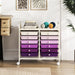 Material: PP, Metal Color: Black, Transparent, Macaron, Pink, Multi-color, Gradient Pink, Colorful, Gradient Black, Gradient Purple Product Dimensions: 63 x 37 x 63 cm (L x W x H) Interior Size of Each Drawer: 26 x 34 x 6 cm (W x D x H) Countertop Weight Capacity: 10 kg Each Drawer Weight Capacity: 1 kg Net Weight: 5 kg Box QTY: 1(May vary by batch) Package Includes: 1 x Storage Cart with 12 Drawers 1 x Instruction Manual