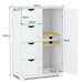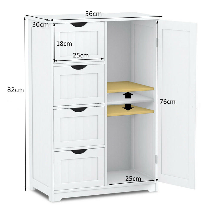 Equipped with four deep drawers, each featuring convenient cut-out handles, our floor cupboard invites you to declutter your space with ease. Store your children's toys, sort your wardrobe essentials, or organize your linens with these generously sized compartments. The adjoining cupboard space, complemented with an adjustable shelf, allows you to customize storage for taller items such as bottles or decorative vases, infusing order and accessibility into your home.