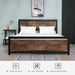 Bring home the epitome of industrial chic with our robust metal bed frame accented by a charming, rustic wooden headboard and footboard. This bed frame enhances your resting space by infusing a touch of elegant individualism combined with practical design.