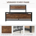 Our bed's design not only exudes an industrial charm but also ensures practicality. The thoughtful inclusion of a headboard and footboard aids in keeping the mattress in its rightful place. Below, ample under-bed storage creates an expansive feel in any room by keeping less frequently used items out of sight yet accessible.