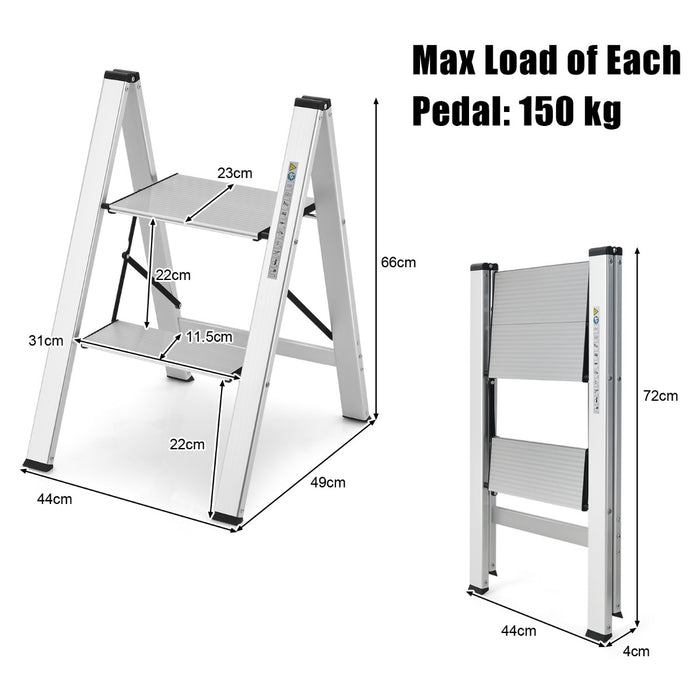Sturdy Aluminum Folding Step Stool - Features Non-Slip Pedal & Footpads - Ideal for Reaching High Shelves or Performing Safe Home Repairs