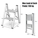 For a better grasp, the ladder, when opened, measures 49 x 44 x 66 cm (L x W x H) and when folded, it measures 72 x 44 x 4 cm. The ladder comes with larger pedals of size 31 x 23 cm and smaller pedals of 31 x 11.5 cm. With a weight capacity of 150 kg and a net weight of 3.5 kg, it is perfectly balanced for your safety and convenience.