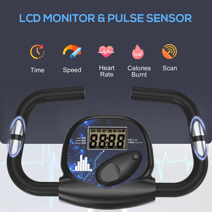 Interactive LCD Monitor: Tracks heart rate, speed, distance, time, and calories.