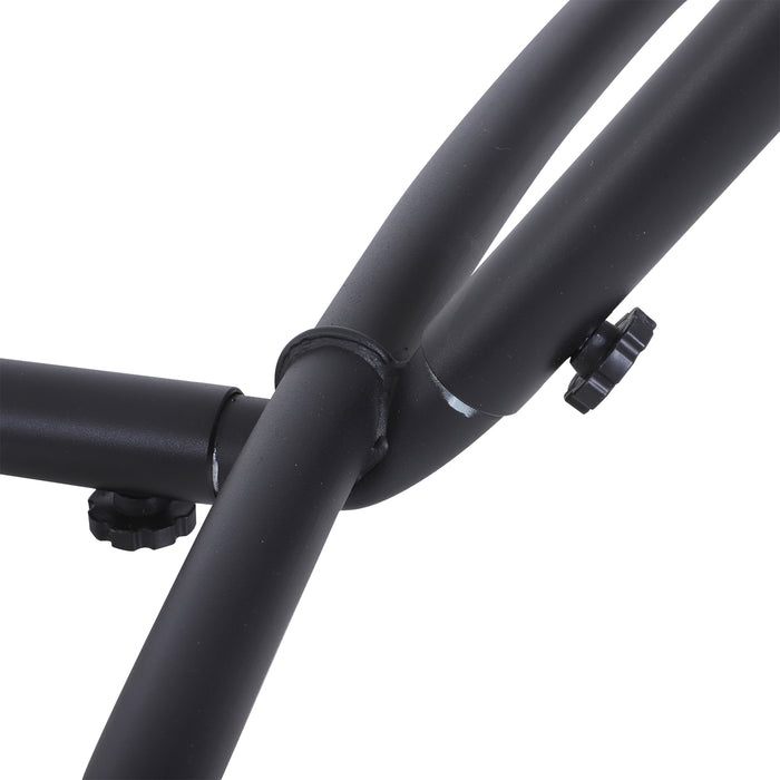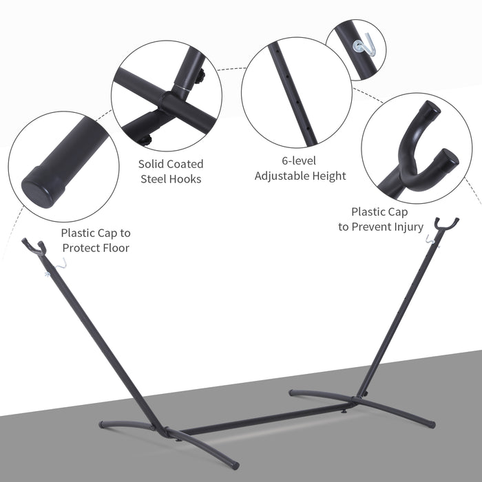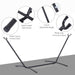 Not only is this hammock stand ideal for outdoor use in gardens, decks, and patios, but it also sports a sleek, black finish that complements any decor style. Its universal design is compatible with all hammock types, from traditional woven styles to modern string designs, ensuring your favorite hammock fits perfectly.