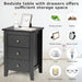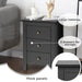 Never compromise on space and organization. This sophisticated nightstand boasts three generously-sized drawers to neatly tuck away everything from nighttime essentials to reading materials. The sleek handles promote effortless access, while the smooth gliding rails ensure you experience convenience at your fingertips. The tabletop offers a sturdy platform for an array of personal items such as decorative plants, waking alarms, and cherished photo frames.
