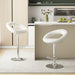 Transform your space into an oasis of chic comfort with our adjustable-height bar stools! Glide effortlessly between 63-83 cm to align perfectly with your personal oasis, thanks to the seamless gas lift design. Indulge in the lush embrace of our crescent back chairs, wrapped in exquisite PU leather for a luxury touch - easy to clean, durable, and oh-so-stylish! Get ready to swivel 360 degrees and mingle in style! Embrace the blend of elegance and stability as you rest on the shimmering foundation of our electroplated base with anti-slide security. It's more than a seat - it's an upscale experience for your home bar or kitchen island! Adjustable Height for Customizable Comfort: Elevate your seating experience with the bar stools featuring an adjustable height of 63cm to 83cm. Tailor the stool to match your counter or bar height smoothly with a gas lift mechanism, ensuring the perfect fit for any setting. Elegant Design: Enhance your space with a touch of contemporary flair. The upholstered pub stool features a curved back with a unique crescent hollow-out that provides a stylish edge, making it a fashionable and functional addition. Luxurious Seating: The plush seating, wrapped in premium PU leather, offers exceptional support and luxury feel. Durable and easy to clean, the kitchen island stools strike the perfect balance between upscale elegance and everyday practicality. 360-Degree Swivel: Experience full-range motion with the counter stool's 360-degree swivel feature. It encourages friendly interactions and provides the freedom to switch orientations swiftly, perfect for gathering areas where engagement and accessibility are key. Sturdy Foundation: Rest assured with the stability offered by the barstools' electroplated metal base with non-slip ring. The SGS certificated gas lift cylinder provides robust support, while the built-in footrest adds an extra layer of comfort.