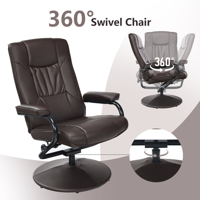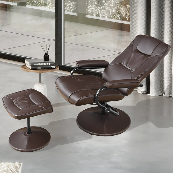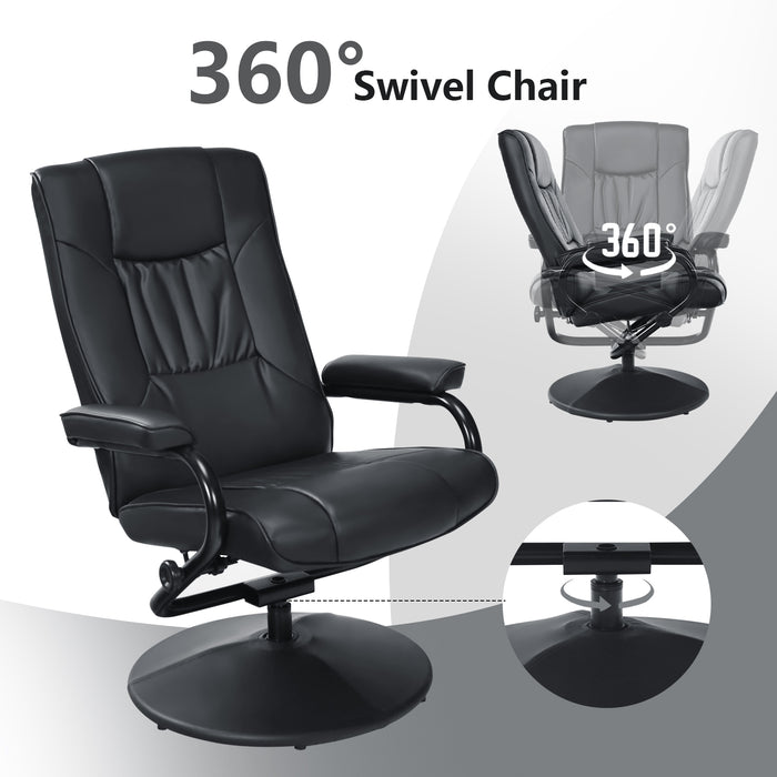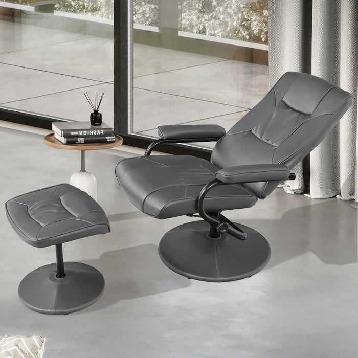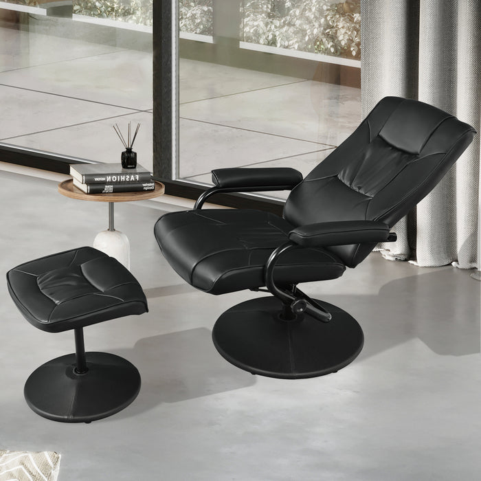 Featuring a recliner and matching ottoman, this set provides a cozy haven that promotes full-body relaxation. The chair boasts a 360° rotation capability, allowing you to enjoy the freedom of movement and an all-encompassing sitting experience. Whether it's your home or office space, convenience and comfort are right at your fingertips.
