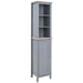 This versatile piece has an overall dimension of 39cm in width, 30cm in depth, and 168cm in height. Each open shelf measures 28cm wide by 26.6cm deep by 24.5cm high, mirroring the inner shelf dimensions for a coherent and aesthetically pleasing look. The color grey ensures that it blends seamlessly with a range of interior decors, while the MDF material guarantees durability and resistance to everyday wear and tear.