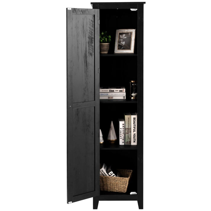 Are you finding a storage cabinet for your home? This storage cabinet helps you own a tidy and clean room. Made of high-quality and thick board, this storage cabinet is sturdy and reliable for long service time. Besides, the anti-toppling device adds additional stability and four raised feet make the cabinet suitable for damp places. 4 shelves provide ample storage space to place items in different sections while the cabinet only occupies small space. The simple and elegant design makes the storage cabinet ideal for various home styles, such as living room, bedroom, etc. In addition, the smooth surface is easy to clean and maintain. Sturdy and Durable Frame: Constructed of laminated and thick board, this storage cabinet ensures sturdy and stable structure for lasting durability. Besides, the anti-toppling device provides more safety for you and four raised feet allow the cabinet to be used in damp places. Large Storage Capacity: The free-standing cabinet provides spacious storage space for holding various stuff. The 4-tier of linen storage cabinet makes it easy to classify your items and the magnetic button is convenient for keeping the door closed. Its slim and narrow size is suitable for limited space. Versatile Usage: This cabinet is a perfect storage solution for homes. In addition to a bathroom cabinet to place towels, it can be used as a side cabinet in the living room for storing items and a bookcase in the study to put books or decorations. Simple and Elegant Design: The smooth finish of storage cabinet provides stylish element and modern feeling to your home, which also matches well with different home styles. Textured color and clean lines make this cabinet compatible with home decor. Easy to Assemble and Clean: All required accessories and hardware are in the package. The cabinet is easy to assemble with detailed instructions in short time. The sleek boards are easy to maintain and clean with a wet cloth.