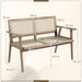 Teak Wood Rattan Bench - Outdoor Garden Bench with Armrests and Backrest - Ideal Seating Solution for Garden and Patio