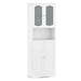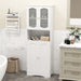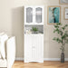 Upgrade your bathroom storage with our versatile tall bathroom cabinet! This sleek floor cabinet features a frosted tempered glass-door cabinet, open compartment, and double-door cabinet, providing ample space for towels, toiletries, and more. The 3-position adjustable shelves make it easy to customize and organize your essentials with ease. With a safe and stable design, including anti-toppling devices, this cabinet is perfect for families with children or pets. Not just for the bathroom, this cabinet is perfect for use in the kitchen, dining room, or living room. Generous Storage Space: This tall bathroom cabinet features 1 glass-door cabinet, 1 open compartment, and 1 double-door cabinet, providing versatile storage options to keep towels, shampoo, tissue, toiletries, aromatherapy, decorations and other bathroom essentials organized. 3-Position Adjustable Shelves: The upper and lower cabinets are designed with one adjustable shelf, each with 3-level heights (distance between each level 6.5 cm), allowing you to customize the spacing based on your storage needs and store items of different heights with ease. Safe and Stable Design: Made from selected MDF material, the tall cabinet is robust and enduring. Besides, 2 anti-toppling devices ensure higher stability and safety. Fixing them firmly to the wall prevents the cabinet from tipping over accidentally, especially for families with children or pets. Applicable to Various Occasions: While this storage cabinet is ideal for the bathroom, it can also be utilized in other areas of your home. Whether used in the kitchen, dining room or living room, this versatile floor cabinet will fulfill your different storage needs without compromising on style. Well-designed Details: This floor cabinet boasts 2 frosted tempered glass doors and 2 regular doors to protect the contents of the cabinet while keeping dust out. In addition, the convenient knobs make it easy to open the doors, and the premium magnetic catch ensures a tight closure.