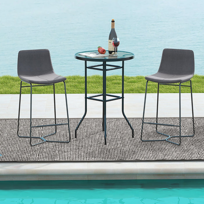 Durable Glass Top: The table boasts a significant, resilient tempered glass surface, designed to endure the elements.