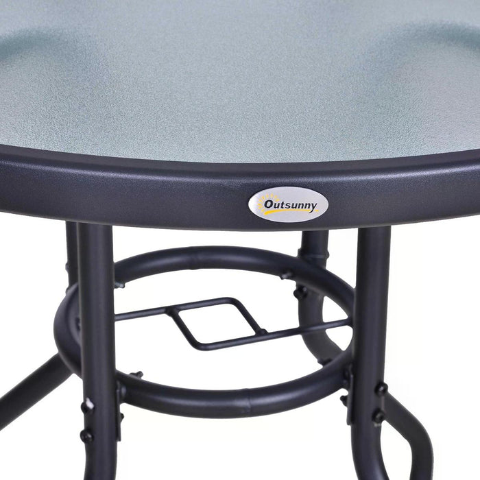 Our bistro table boasts a stunning tempered glass surface featuring a water ripple effect that exudes an aura of sophistication and modern charm. The glass is not only a beautiful addition to your outdoor space but also incredibly effortless to clean, ensuring your setting remains impeccable with minimal upkeep.