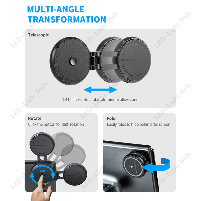 Get the best viewing angle with our 360-degree rotating mount, perfect for both horizontal and vertical views. Simply use the button located in the center of the base for effortless adjustments. No need to worry about cable mess as it comes with a wireless charging functionality.