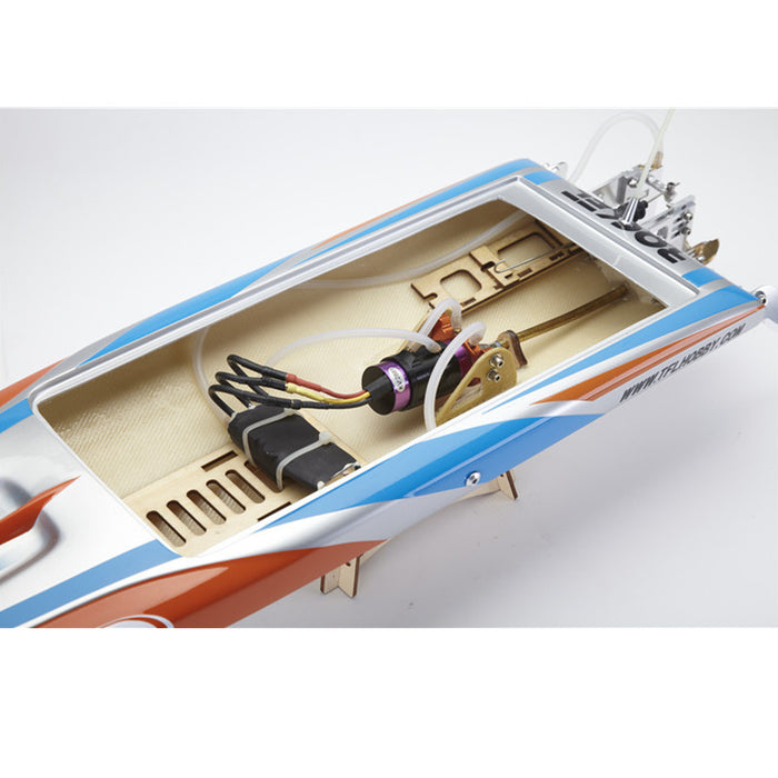 The TFL Rocket FSR-OF RC Boat comes equipped with a 2958/2881KV brushless motor and a 70A electronic speed controller (ESC) for incredible power and agile handling. Sail through the water at incredible speeds and experience the rush of adrenaline as you navigate sharp turns and conquer the waves.