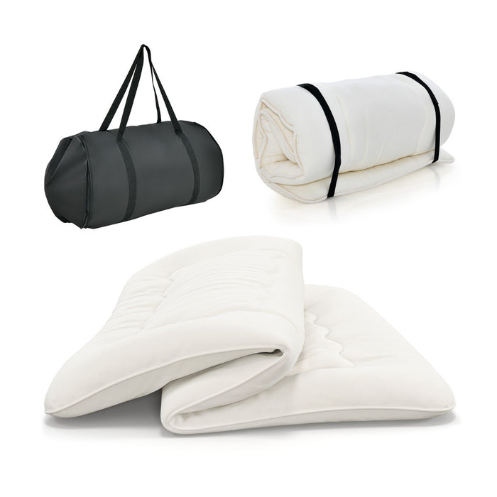 Ideal for the nomadic spirit, this versatile mattress is your perfect travel partner, be it in an RV or the trunk of your car. It's ingeniously designed to roll up and be cinched with straps, transforming it into a convenient, portable bundle. The accompanying carrying bag makes transportation a breeze, allowing you to bring the comfort of home wherever you roam.