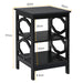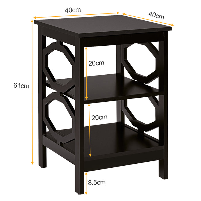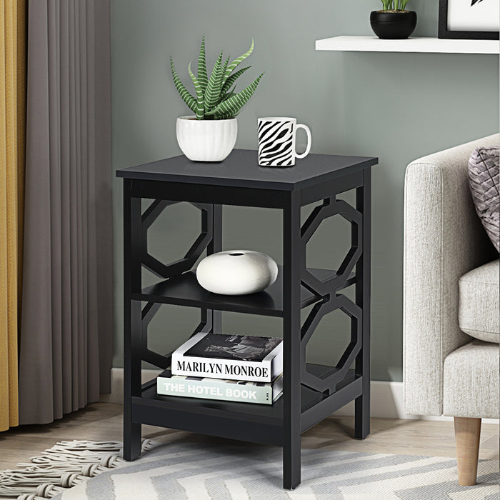 Featuring three ample shelves, our contemporary end table offers abundant space to store and display your essentials. The top surface is the perfect home for your chic bedside lamp, your latest read, or treasured knick-knacks. Below, two additional shelves provide easy access to items you may want close by as you unwind after a long day. The thoughtful distribution of space ensures a tidy environment while keeping everything you need within arm's reach.