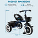 With an adjustable seat for personalized comfort, this toddler trike caters to children between 1.5-5 years old. The 3-wheel stability, along with the 110° limit steering, allows the kids tricycle to keep stable. Featuring premium EVA wheels, the toddler bike is suitable for both indoor and outdoor adventures. The baskets at the front and back provide generous storage space for children’s toys and snacks. This toddler tricycle complies with EN 71, serving as a perfect gift option for little explorers to enjoy riding and enhance their motor skills. Customized Comfort: Featuring an adjustable seat, this toddler tricycle is suitable for kids aged 1.5-5 years old. The ergonomic design of the seat promises optimal comfort for your little one during their rides. Stable and Secure Design: The toddler trike features a sturdy carbon steel frame and a triangular structure for a stable biking experience. The anti-slip handlebars provide children with secure grips, and the limited 110° steering prevents the trike from tipping over. Indoor and Outdoor Ride: Equipped with anti-skid and puncture-proof EVA wheels, this kids tricycle allows for a smooth and silent ride on wooden floors, tile floors, rubber roads, and brick roads, ensuring indoor and outdoor fun. Moreover, the kid-friendly foot pedals make it easy for little feet to keep moving. Ideal Storage Solution: The toddler bike has a front basket and rear basket that brings ample space for carrying essential items, such as toys and snacks. This makes the kids trike a perfect companion for your child’s explorations. Ideal Gift for Toddlers: EN 71 compliant, this toddler tricycle ensures excellent safety and reliability. It is a wonderful gift that helps children build muscle strength, improve balance, enhance motor skills, and boost confidence as they enjoy their rides.