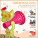 This set is a treasure trove of fun with various elements that cater to different aspects of playtime. It's comprised of a smooth, gentle slide, a secure swing, an interactive steering wheel equipped with a charming whistle, and a telephone for a dash of pretend play. To top it off, it also includes a horn that emits sounds that captivate young ones, featuring an elephant's trumpet, a sharp whistle, or the classic chug of a train.