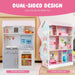 The kitchen area is a culinary playground equipped with a microwave, stove, sink, and fascinating click-and-light features on the range. Not only does the rotary stove knob produce authentic clicking sounds, but the stove also lights up, mimicking the true-to-life experience of cooking. With these interactive elements, your little chef will be engaged in captivating kitchen pretend plays for hours.