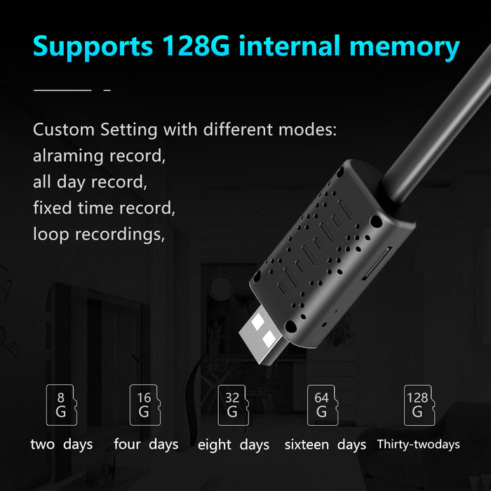 Automatically store recorded footage on a microSD card (not included), with support for up to 128GB capacity, providing ample space for days or even a month's worth of video recordings.
