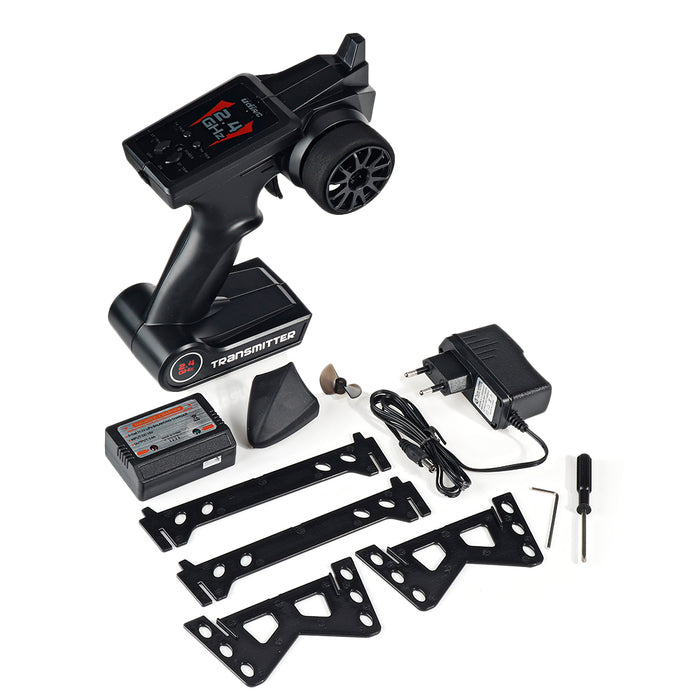 Take full command with the model grade 2.4G remote control, offering an impressive remote distance of 120-150m. The transmitter requires 3X AA batteries (not included) and features yaw automatic correction to ensure precise steering and handling.