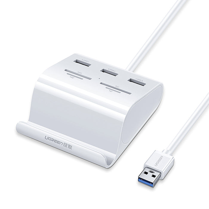 The UGREEN US156 7-In-1 USB Hub is a multifunctional device designed to extend and enhance your workspace. Packed with 3 USB3.0 ports and 4 card reader slots, this sleek hub ensures you have all the ports you need for seamless productivity and entertainment. No need to worry about install processes or compatibility issues, as this plug-and-play device works with a wide range of operating systems. With its ergonomic stand feature, enjoy hands-free viewing on your phone or tablet, making multitasking effortless.