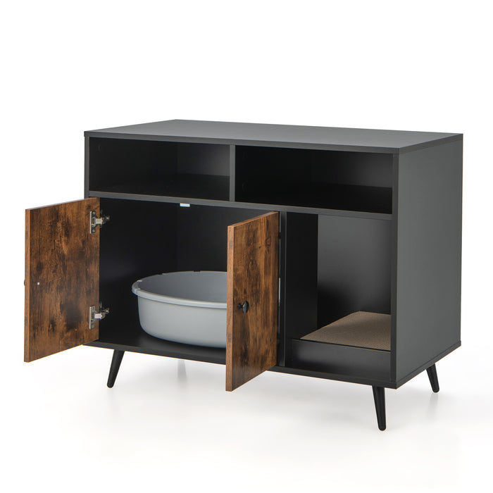 The versatility of this cat litter box enclosure allows it to blend seamlessly into any room. Its classic look is adaptable enough to function as a bedside companion in your sleeping quarters, a stylish end table adjoined to your dining area, or a voguish coffee table set amidst your lounge decor. This elegant piece is available in striking shades of black and brown that are sure to enrich your interior aesthetics.