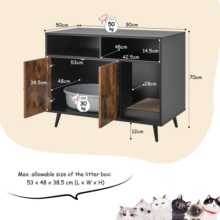 Discover the multifunctional sanctuary that will not only serve as your feline's discrete lavatory but also as a stylish piece of furniture that complements any room. With versatility at its core, this exquisite cat litter box enclosure transcends its primary purpose of housing your pet's litter tray. It marries form with function, creating a secure and inviting space for your beloved cat while keeping your home organized and elegant.
