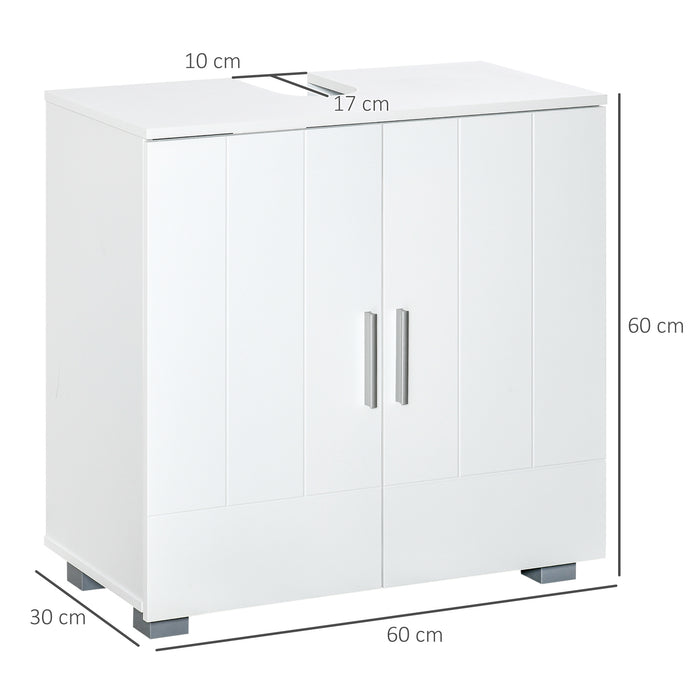 Introducing a savvy bathroom essential for those who cherish both aesthetics and functionality. Our under-sink cabinet, embodying a crisp white finish, is ingeniously designed to maximize your space without compromising on style. Ideal for tucking away all your bathroom necessities, this vanity unit is perfect for a clutter-free and serene bathroom environment.