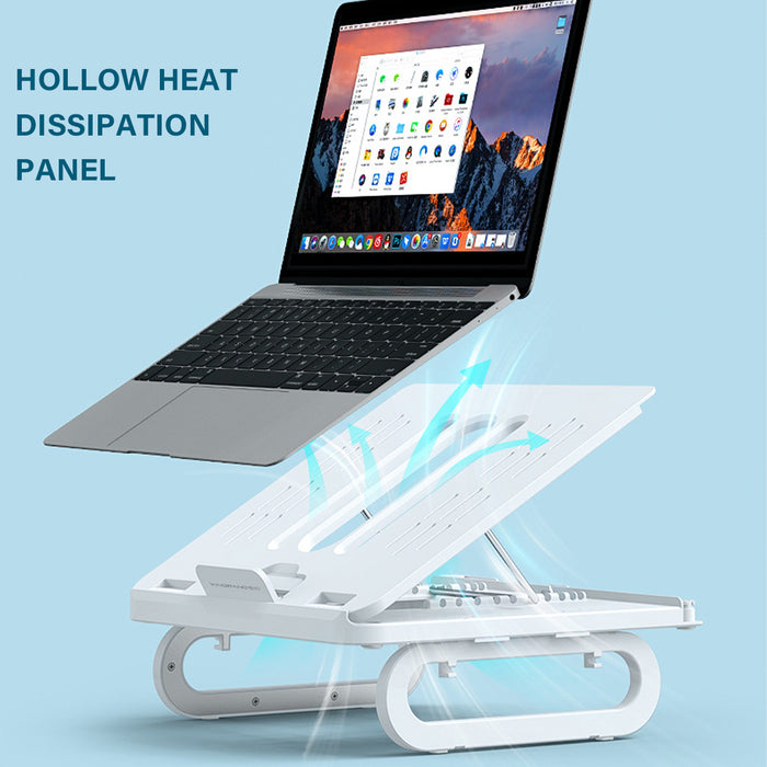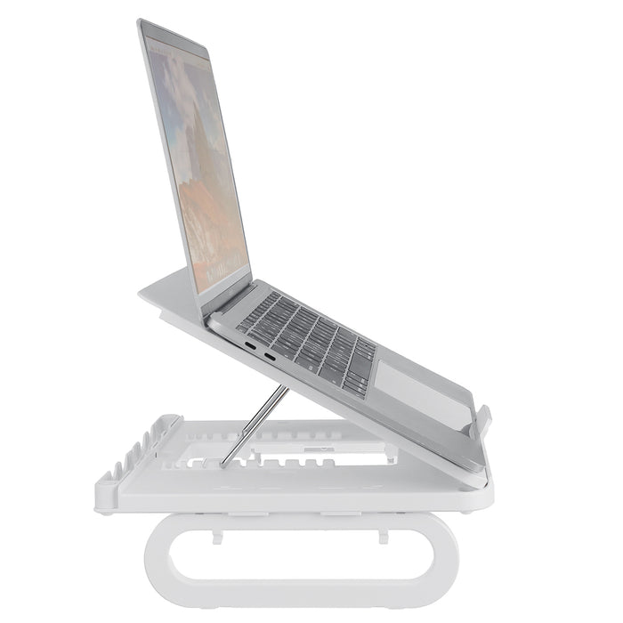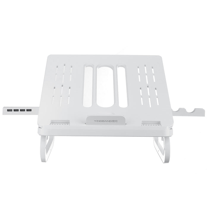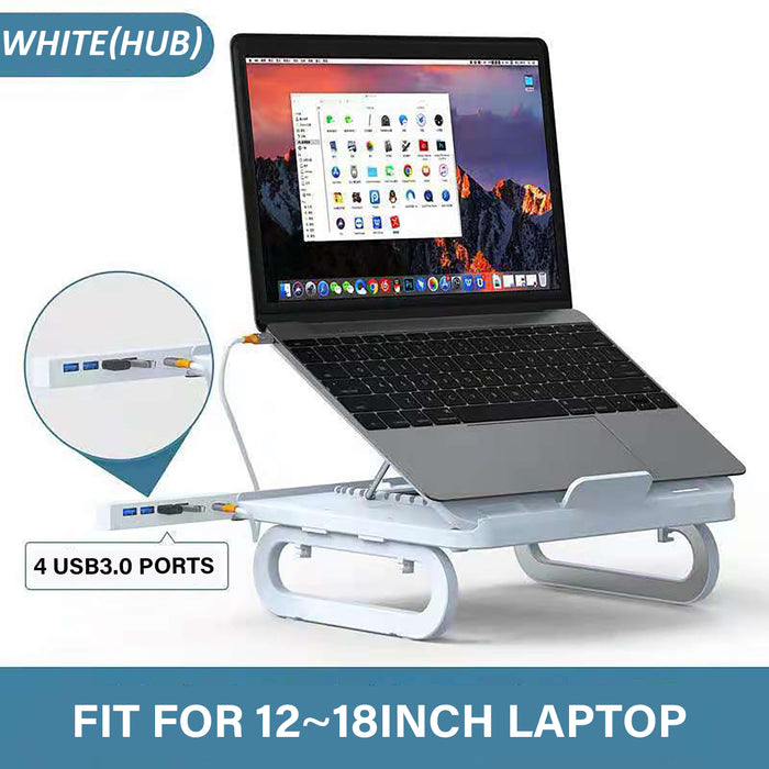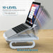 Our laptop stand is featured-packed to cater to your every need. It comes with 4 USB 3.0 ports and a USB power supply to keep your devices fully charged. You can adjust the stand's height to ten different levels to get your desired angle and height, catering to a variety of needs.