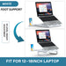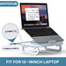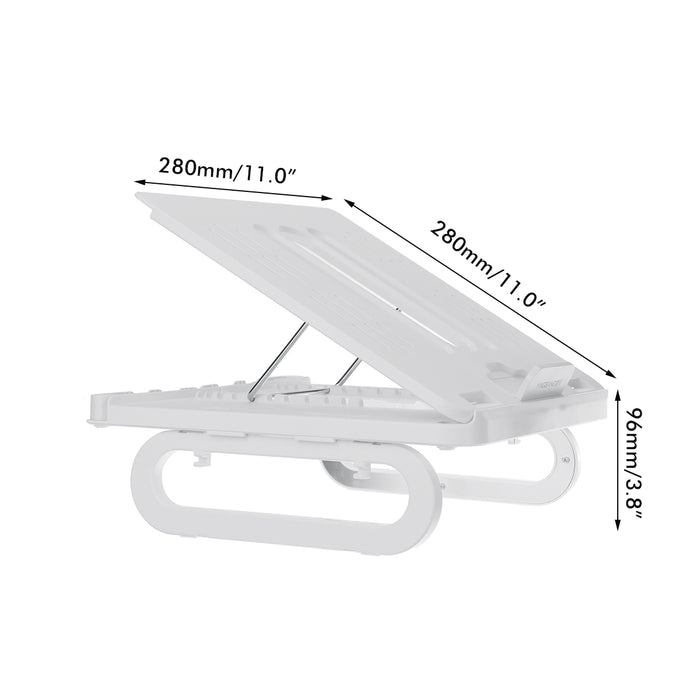 The ergonomic laptop stand is designed to accommodate laptops ranging from 12 to 18 inches conveniently. Its practical and space-saving overall dimensions sit at 280 x 280 x 96 mm or 11.0 x 11.0 x 3.8 inches.