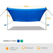Designed with simplicity in mind, the canopy features a user-friendly setup with four aluminum poles and EVA balls that gently protect the fabric. Coupled with four resilient sandbags and reliable tent pegs, the structure remains stable even on breezy days. Disassembly is a breeze, and the canopy gracefully folds into a compact storage bag, allowing for easy transportation and storage. With a generous coverage area suitable for 3 to 4 adults, it's the perfect accessory for your next group adventure.