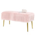 Our stool boasts a lavish faux fur seat that immediately captures attention, making it a perfect statement piece. The slender golden metal legs provide a sleek contrast and a touch of modern opulence to your home décor. Whether it's used as a charming addition to your vanity set or as an elegant accessory in your entryway, its versatile style complements any room effortlessly.