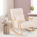 The high padded backrest and smooth armrests offer comfortable support. Soft seat cushion and lumbar pillow make you feel comfortable when you read books, watch TV, or play games. The gentle and smooth rocking motion provides a fun alternative to boring seating. Additionally, the rocking chair also comes with a side pocket to place small items. Supported by solid rubber wood frame, the reading rocker stays stable and sturdy. Anti-slip foot pads ensure enhanced steadiness and protect the floor from getting scratched. Smooth and Gentle Rocking: The curved rocking feet and anti-slip felt foot pads ensure safe and gentle rocking motion within 35°. The rocking chair can rock forward and backward to offer you enjoyment and relaxation. Comfy Seating Experience: The ergonomic padded backrest and smooth wooden armrests support your back and arms to relieve your fatigue. Moreover, the breathable linen fabric upholstery, extra springs and elastic sponge filling allow for ultimate comfort. Natural Rubber Wood Frame: Made with high-quality rubber wood frame, the accent rocking chair is strong enough to ensure excellent strength and long-lasting service. It bears a weight of 120 kg. The solid rubber wood frame also helps it remain sturdy and steady. Lumbar Pillow and Side Pocket: This rocking chair has a soft lumbar pillow with PP cotton filling for coziness. The zippered cover of the lumbar pillow is machine-washable. Plus, the detachable magazine pocket keeps your items within reach. You can use it to store phones, magazines, snacks, remote controls, and more. Versatile and Practical Design: With button tufted decoration and natural wood grain, the rocking armchair adds a touch of elegance and charm to your room. You can place it in the living room, bedroom, nursery, and more.