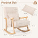 Colour: Beige + Natural Material: Rubber Wood, Linen Fabric, Sponge Product Size: 94 x 66 x 94 cm (L x W x H) Size of Lumbar Pillow: 48 x 31 cm (L x W) Backrest Height: 63 cm Armrest Height: 61 cm Seat Height: 49 cm Seat Size: 60 x 60 cm (W x D) Seat Thickness: 17 cm Weight Capacity: 120 kg Net Weight: 17 kg Package Includes: 1 x Rocking Chair 1 x Lumbar Pillow 1 x Instruction Manual