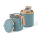 Colour: Blue Materials: MDF, Sponge, Polyester Dimensions of Large Ottoman: 44 x 39 cm (H x Dia.) Dimensions of Small Ottoman: 39 x 34 cm (H x Dia.) Capacity of Large Ottoman: 41 L Capacity of Small Ottoman: 25 L Weight Capacity of Each Ottoman: 150 kg Net Weight: 6 kg Package includes: 2 x Round Storage Ottomans