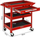 Equipped with four smooth-rolling universal wheels, two of which lock securely to keep the cart in place, you have the agility to move your tools precisely where you need them. The ergonomic handle ensures a comfortable grip, facilitating ease of transportation around the garage, workshop, or any workspace you operate within.