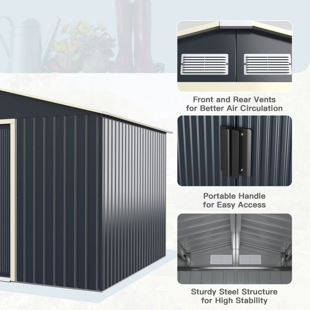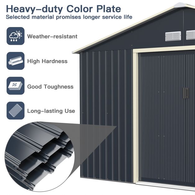 Made with robust powder-coated steel, our shed exemplifies durability. The weather-resistant paint finish protects against the elements, while the strong steel reinforcements guarantee stability, offering your possessions a safe and permanent shelter.