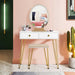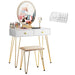 The heart of this dressing table lies in its large oval LED mirror, equipped with touch control lighting to tailor your ambiance to the task at hand. Whether you're looking for brilliant illumination for precise makeup application or a softer glow to unwind in, our mirror offers three adjustable color settings to match your mood. Your beauty rituals are now highlighted in true, sparkling clarity.