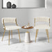 Each chair boasts a resplendent golden metal frame that infuses a sense of sophistication into your environment. The artistically woven backrest, created through an innovative process, provides not only an eye-catching feature but also serves as a conversation starter. The rich texture paired with immaculate design details come together to introduce a princely charm to your dining room.
