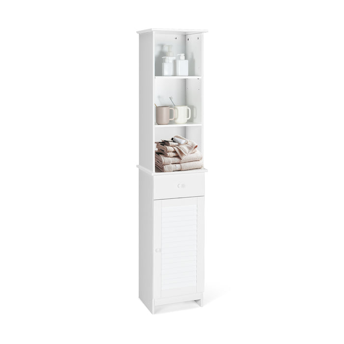Not confined to the bathroom, this storage cabinet's sophisticated white hue and timeless louver door details seamlessly complement any room's décor. Whether it's the living room, kitchen, bedroom, or beyond, this cabinet's elegance is sure to elevate your space.