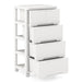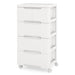 Crafted from PP material, the rolling storage cabinet features a spacious cabinet top, which provides a perfect space for showcasing decorations, and 5 drawers for versatile storage solutions. With smooth universal wheels for easy mobility, 2 of which are lockable for stability, this storage organizer effortlessly moves around your home. Its varied drawer sizes are perfect for storing art supplies, kitchen gadgets, and office essentials, making it adaptable to your needs. Resistant to stains and lightweight yet long-lasting, this storage unit promises a long service life. The tool-free assembly, with interlocking components for quick setup, ensures a hassle-free experience without the need for any hardware. Bullet Point: Ideal Storage Solution: Keep your home clutter-free with the rolling storage unit that features a combination of wide cabinet top and 5 drawers. It is perfectly tailored to store your books, magazines, snacks, toys, or toiletries. Please close the drawers timely to avoid tipping. Mobile Convenience: Equipped with smooth, universal wheels, the mobile storage organizer easily glides from room to room. And 2 lockable wheels add stability when stationary, offering the perfect blend of mobility and security. Exceptional Versatility: Whether it's art supplies, kitchen gadgets, office essentials, or bath products, the storage cart adapts to your needs. The varied drawer sizes help you build your own storage system for kids room, studio, home, office, and more. Long-Lasting Material: Crafted from superior PP, the storage cabinet promises ideal durability. Lightweight yet sturdy, it holds up well against the rigors of daily use, making it an enduring and stain-resistant choice for your space. Tool-Free Installation: The storage organizer boasts a tool-free assembly, featuring interlocking components that easily snap together without the need for any hardware, enabling a quick and effortless setup.
